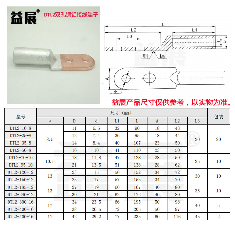 益展電氣專業生產各種銅接線端子,銅鼻子,雙孔銅鼻子,銅鋁過渡線鼻子,SC窺口線鼻子,雙孔銅鋁鼻子,冷熱縮電纜附件,穿刺線夾,堵油銅鼻子,冷壓端子,C45插針,OT開口鼻子,管型冷壓端頭,銅鋁線夾,絕緣穿刺線夾,接線端子,接插件,壓線帽,等各系列配線器材。廠家直銷,價格優,質量高。歡迎與各界人士合作。