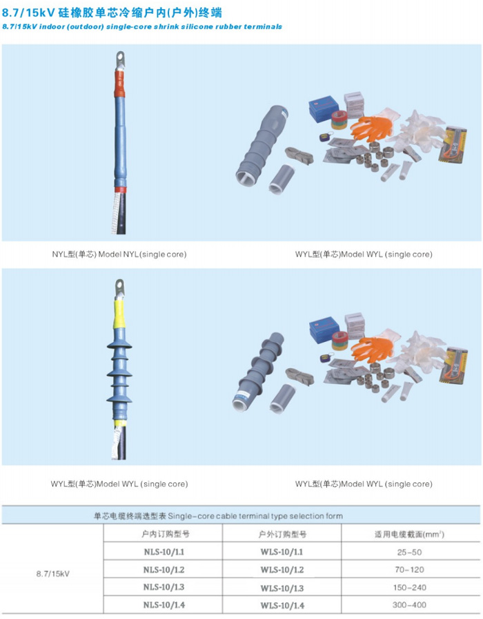 8.7-15KV冷縮單芯電纜頭 Home您現(xiàn)在的位置:網(wǎng)站首頁 >> 產(chǎn)品中心 >> 冷縮電纜附件